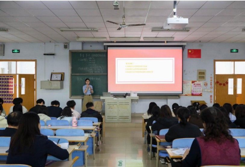 课堂上,靳夕娟围绕“毛泽东思想的形成和发展”专题,系统讲解了毛泽东思想形成的理论基础与实践探索历程。从毛泽东同志生平事迹切入,循序渐进引导学生回望革命岁月,沉浸式体悟工农红军在实践中成长壮大的历史进程,帮助学生深刻理解毛泽东思想在历史经验总结中逐步形成、走向成熟与持续发展的完整脉络。课堂上学生专注投入、互动积极,整体教学秩序井然,育人氛围浓厚。