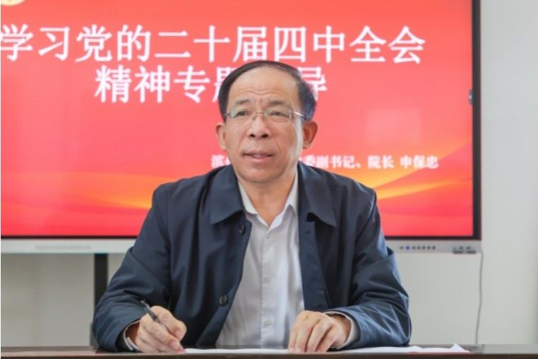 12月15日上午,党委副书记、院长申保忠以《深入学习贯彻党的二十届四中全会精神 凝聚奋进“十五五”新征程磅礴力量》为题,为直属机关十支部全体党员及入党积极分子讲授了一堂主题鲜明、内容深刻的专题党课。
